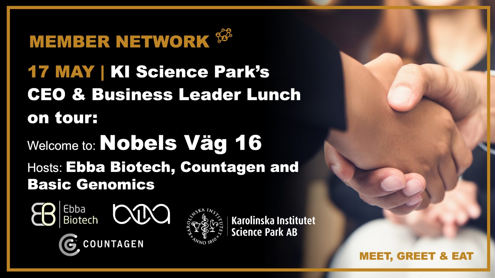 KI Science Park’s CEO and Business Leader Lunch at Nobels Väg 16: meet Basic-Genomics, Countagen and Ebba Biotech.