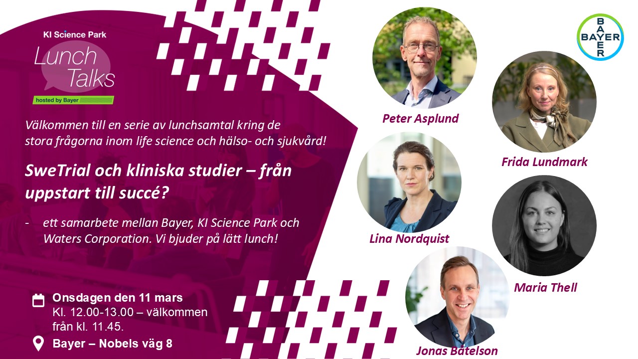 Välkommen till KI Science Park Lunch Talks hos Bayer den 11 mars – i nya lokaler på Nobels väg 8, […] Read more |