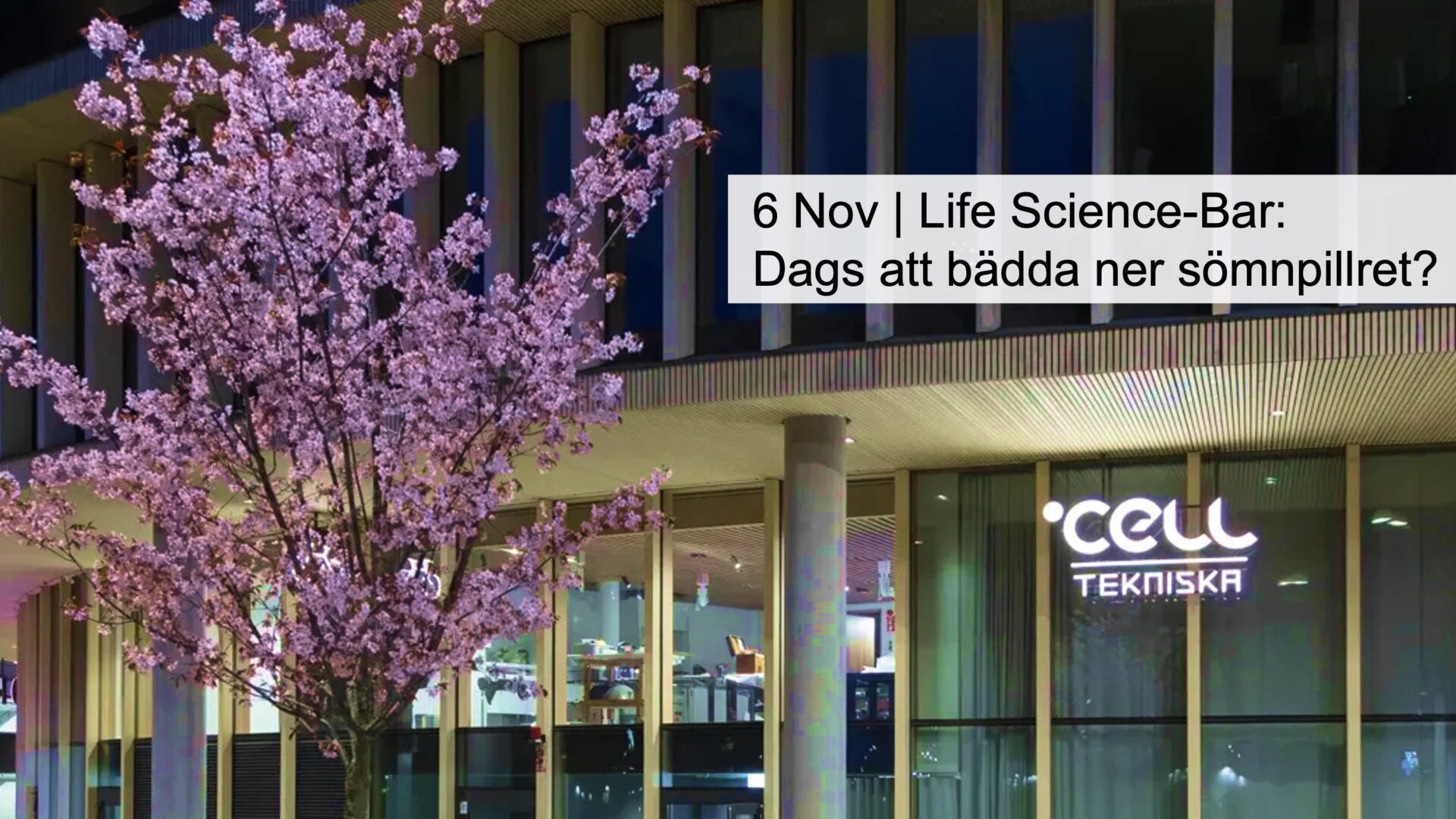 The Cell: Life Science-Bar: Dags att bädda ner sömnpillret? Nov 6 17:00 - 18:00 The Cell: Life Science-Bar: Dags att bädda ner sömnpillret?