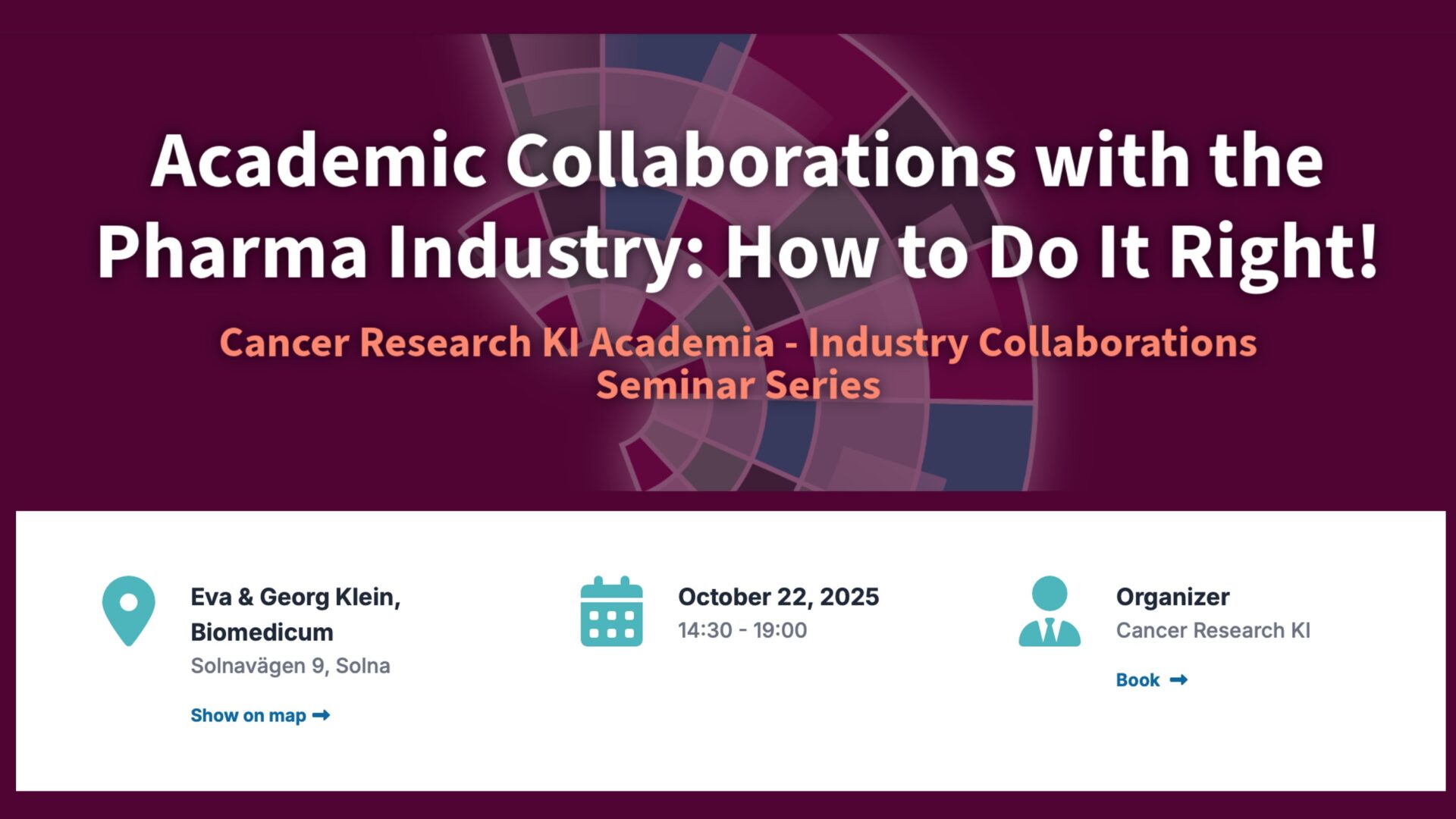 We’re happy to share this event from our friends at Cancer Research KI: Academic Collaborations with the Pharma Industry: How […] Read more