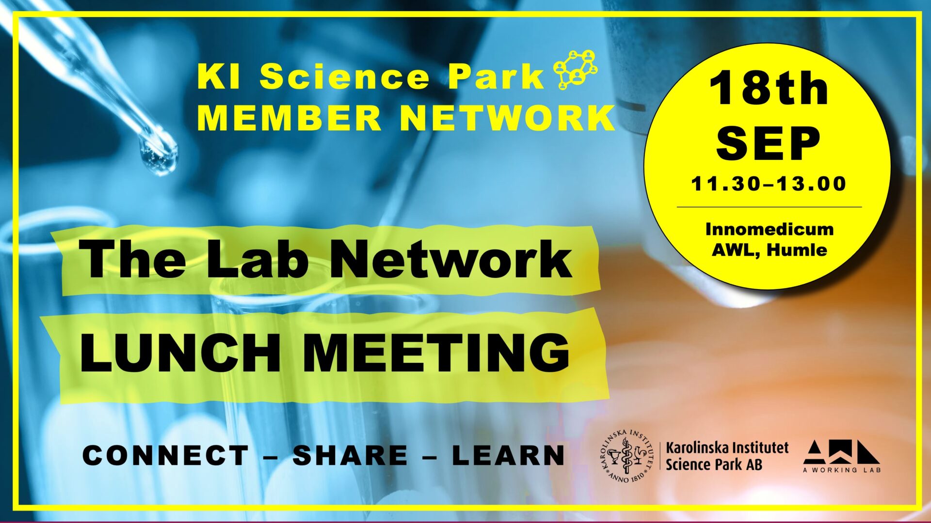 Innomedicum. A Working Lab meeting room: Humle, floor 1. Nanna Svartz väg 6a, Solna, SwedenCompany Member Network | Lunch with the network. Reconnect after the summer, share and discuss with fellow members.