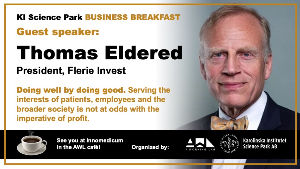 Meet Johan Kördel, Managing Partner President, Sound Bioventures at Business Breakfast Johan will talk about Life Science Venture Investment trends […] Read more